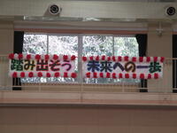 このスローガン「踏み出そう 未来への一歩」は、5年生が横断幕にして、4年生が飾り付けをしました。