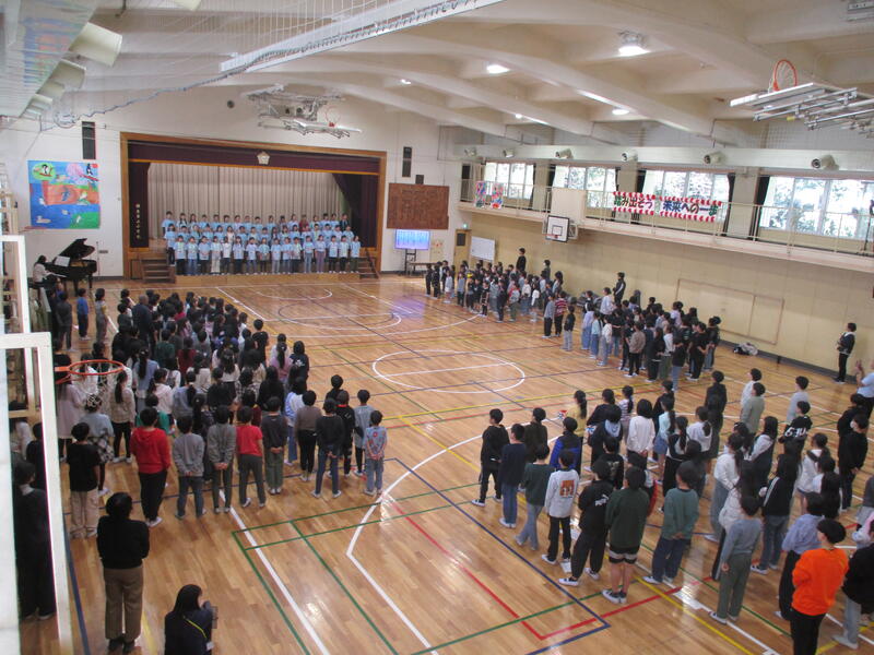 来週行う「6年生を送る会」で歌う全校合唱の練習をしました。どの学年も日ごろの音楽科の授業での成果をしっかりと発揮して、大きな歌声を体育館に響かせてくれました。